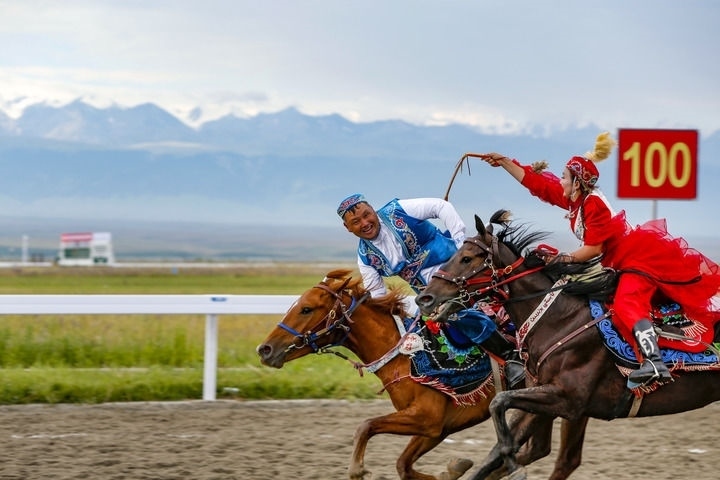 本屆運(yùn)動會的表演項(xiàng)目具有鮮明的地域差異性和民族特色。巍峨雪山、廣袤草原,運(yùn)動會馬上項(xiàng)目的比賽于今年7月在新疆維吾爾自治區(qū)昭蘇縣舉行。其中,“姑娘追”作為表演項(xiàng)目給人留下深刻印象?!肮媚镒贰痹仁枪_克族男女青年的一種戀愛方式,即姑娘騎馬追上心愛的青年,用皮鞭輕輕抽打他,來表達(dá)愛意?,F(xiàn)如今,在各民族文化的互鑒融通中,“姑娘追”已成為一項(xiàng)饒有風(fēng)趣的群眾性體育活動,不斷傳承發(fā)展。