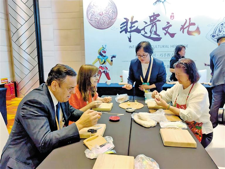 外賓在第五屆中蒙博覽會2025年國家向北開放重要橋頭堡智庫論壇非遺文化展區(qū)體驗。 草原云·內蒙古新聞網記者 李永桃 攝