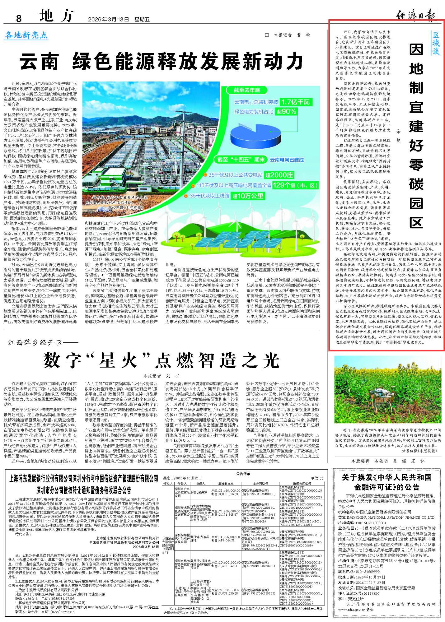2026年3月13日《經(jīng)濟日報》第8版刊發(fā)了《因地制宜建好零碳園區(qū)》的文章,報道了近日,包頭稀土高新區(qū)啟動國家級零碳園區(qū)建設(shè),計劃 2027 年底完成創(chuàng)建。零碳園區(qū)是綠色低碳轉(zhuǎn)型關(guān)鍵抓手,建設(shè)需統(tǒng)籌能源、產(chǎn)業(yè)等多領(lǐng)域,解決重形式、綠電消納不暢等問題,通過優(yōu)化頂層設(shè)計、強化綠電就地消納、深化區(qū)域協(xié)同聯(lián)動,以務(wù)實舉措推進落地,助力高質(zhì)量發(fā)展。