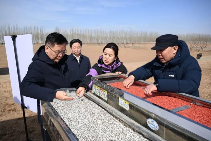 3月15日,包鋼在臨河農(nóng)場(chǎng)詳細(xì)了解種子、肥料等農(nóng)資準(zhǔn)備,詢問(wèn)高標(biāo)準(zhǔn)農(nóng)田建設(shè)進(jìn)展和優(yōu)質(zhì)農(nóng)產(chǎn)品生產(chǎn)銷售情況。草原云·內(nèi)蒙古新聞網(wǎng)記者 韓卿立 攝