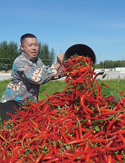 巴彥淖爾蘇木聯(lián)合嘎查牽線吉林企業(yè)與農(nóng)戶簽訂紅辣椒收購協(xié)議,225戶農(nóng)戶連片種植1000畝辣椒,畝產(chǎn)達到1200斤,每戶年增收1.2萬元。秋收時節(jié),卡車直抵地頭裝袋,老鄉(xiāng)們圍坐在田埂上點收貨款,笑容里滿是豐收的喜悅。