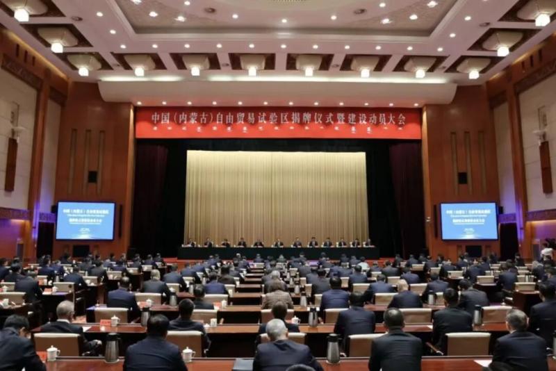 中國(guó)(內(nèi)蒙古)自由貿(mào)易試驗(yàn)區(qū)揭牌儀式暨建設(shè)動(dòng)員大會(huì)現(xiàn)場(chǎng)。記者 馬駿馳 攝