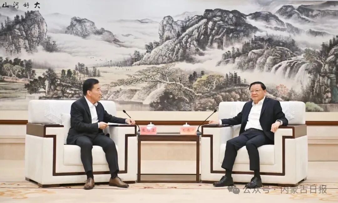 4月16日下午,自治區(qū)黨委書記、人大常委會(huì)主任王偉中在呼和浩特會(huì)見明陽(yáng)新能源投資控股集團(tuán)有限公司黨委書記、董事長(zhǎng)張傳衛(wèi)一行。草原云·內(nèi)蒙古新聞網(wǎng)記者