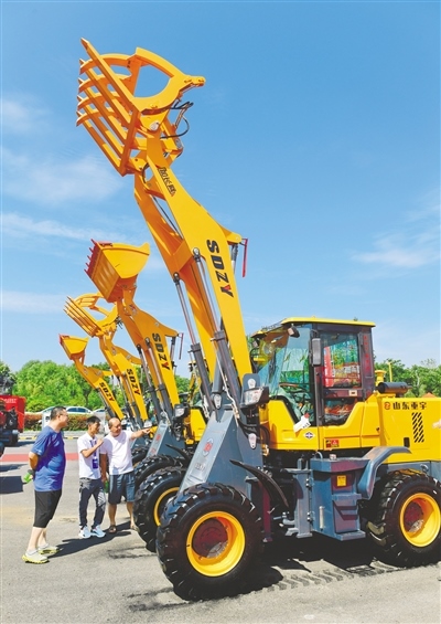 8月13日,在第三十屆內(nèi)蒙古國際農(nóng)業(yè)博覽會(huì)上,工作人員向觀眾介紹農(nóng)機(jī)產(chǎn)品。記者 王磊 攝