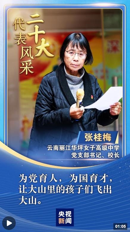 “二十大代表風采”一起來認識“七一勛章”獲得者,云南麗江華坪女子高級中學創(chuàng)辦人張桂梅。