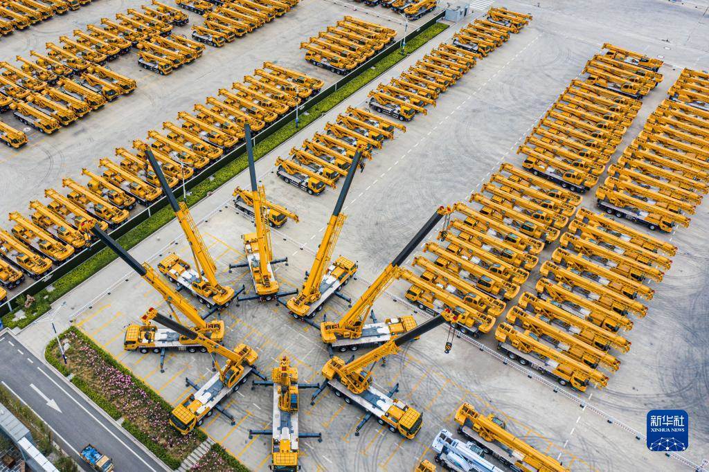 這是5月9日拍攝的江蘇徐工集團重型機械有限公司的產(chǎn)品調(diào)試場(無人機照片)。新華社發(fā)